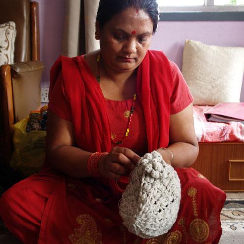 女性たちは、仲間同士でグループを作り、それぞれのグループリーダーを中心に、メンバーの技術レベルや、その時々の家庭の状況や体調に合わせて注文と材料を分配したり、技術的なアドバイスをし合ったりしながら、注文をこなしていっています。