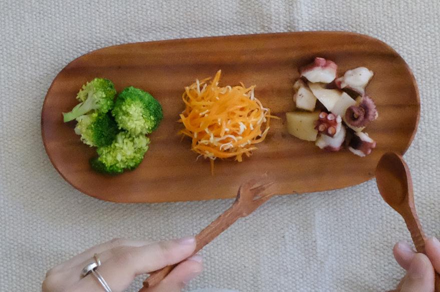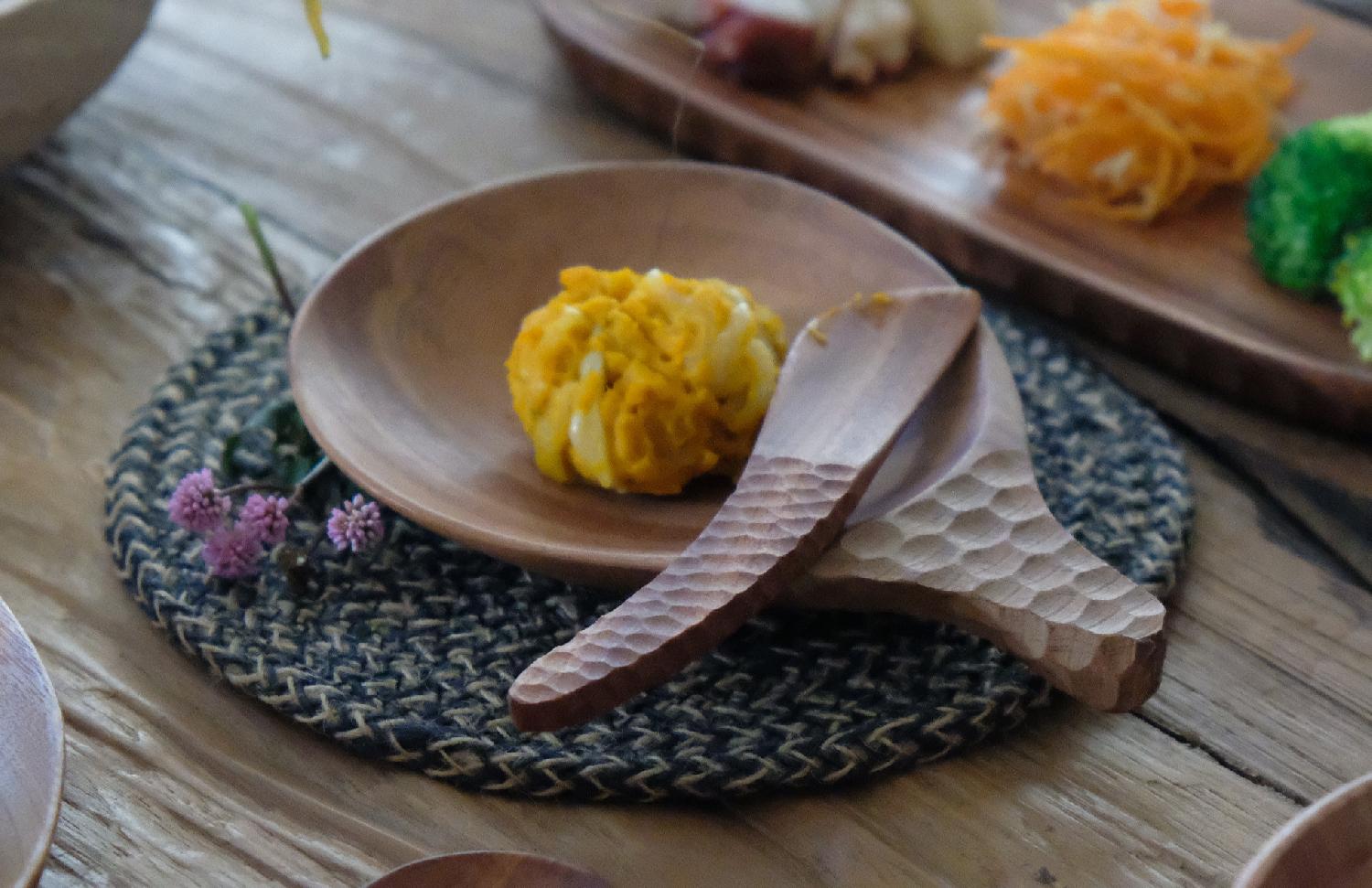 一見スプーンのようですが、お皿!という遊び心のあるデザイン。ちょっとした一品をのせたり、持ち手があるので、それぞれの取り皿としても使いやすいです。