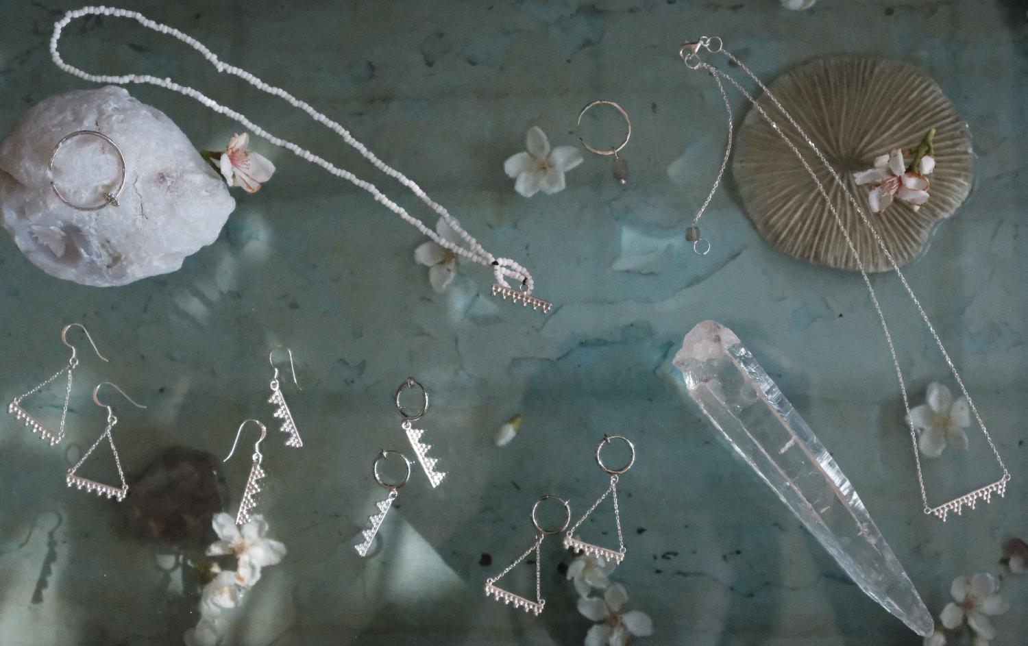 インドネシアのバリ島で暮らす作り手たちが、一つ一つ丁寧に作り上げたアクセサリーたち。 小さな小さなシルバー粒の重なり。 一粒一粒形がちがう繊細な白いリサイクルガラスビーズ。 インドネシアの朝のお祈りの静かな時間を想わせてくれるコレクションです。