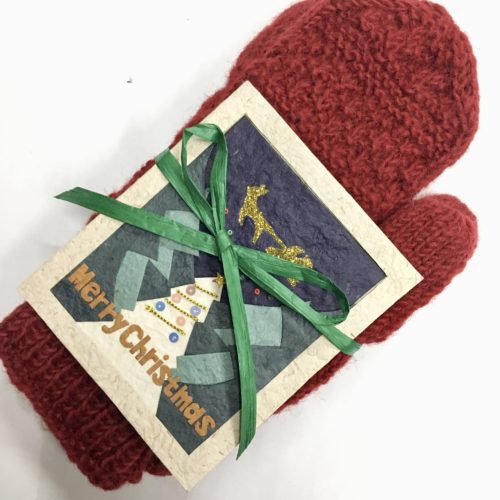ひとつひとつ丁寧に手編みで編まれたウールミトン。