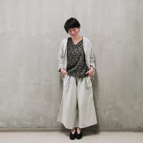 前身頃のタックが、落ち感のきれいなシルエットを描きます。