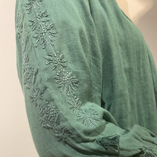 たっぷりの刺繡とタッセルが付いたトップスに、