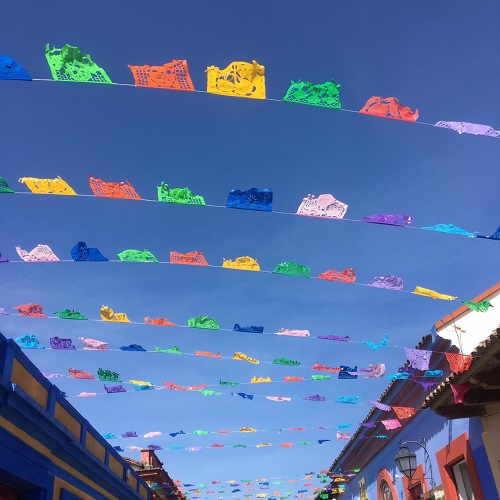 南米メキシコの町でお祭りの切り絵飾りです