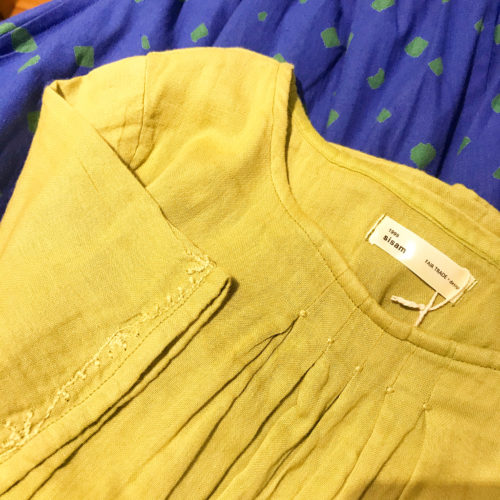 きいろのツブツブは柑橘のようで、着ているだけで元気が湧いてきます◎