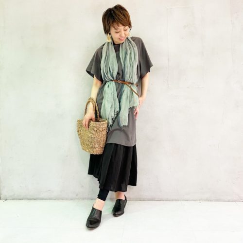 【ワンピース×スカート×ジレ使いショール】