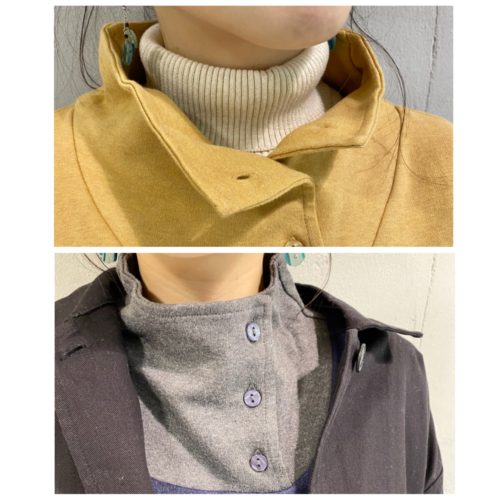 タートルネックほど締まりすぎず、首まわりを温かく包み込みます。