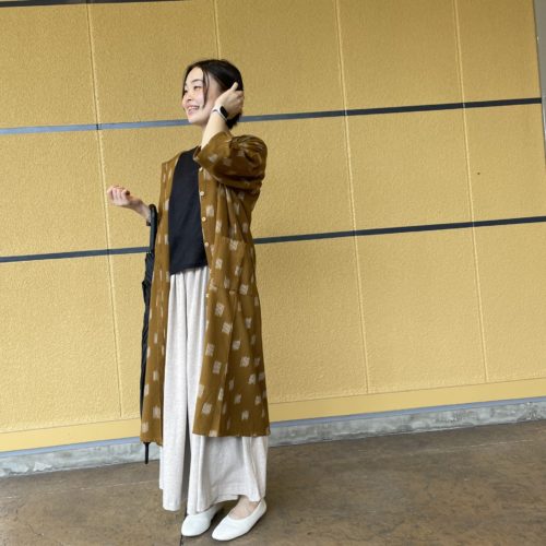じめじめした季節にも肌離れが良く快適な絣織のシャツワンピースです。