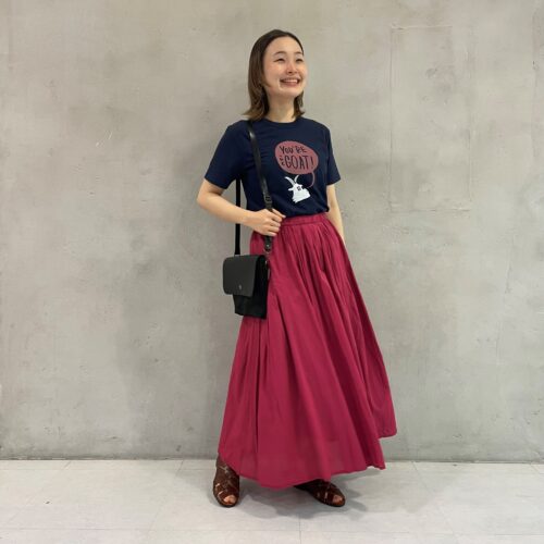Tシャツに描かれた色とスカートの色味を合わせれれば、