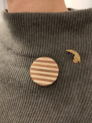 ころんとしたフォルムの可愛い木のキルトピン。
