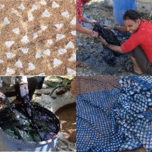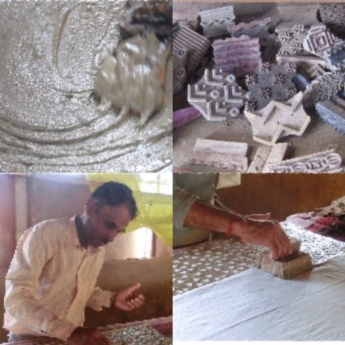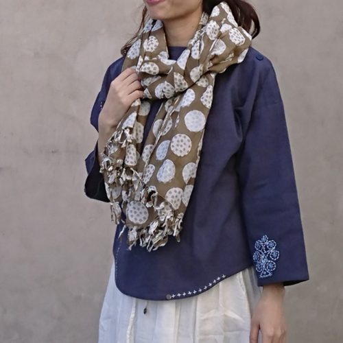 古くからインドに伝わる「ダブプリント」技法で柄をプリントしています。