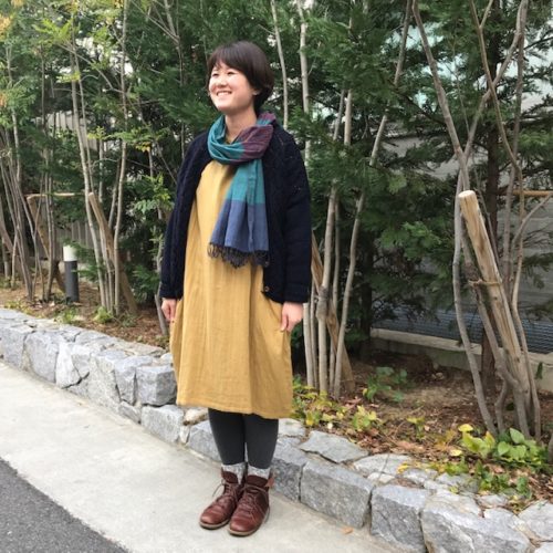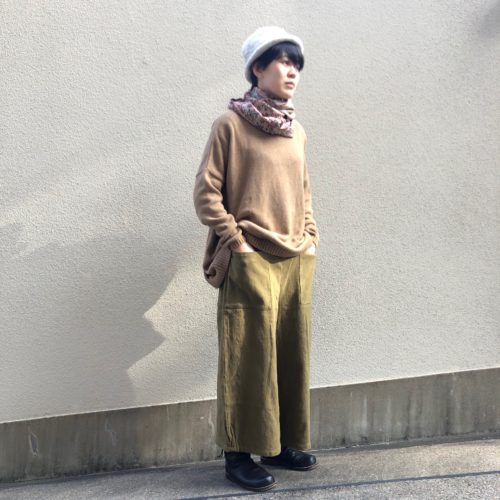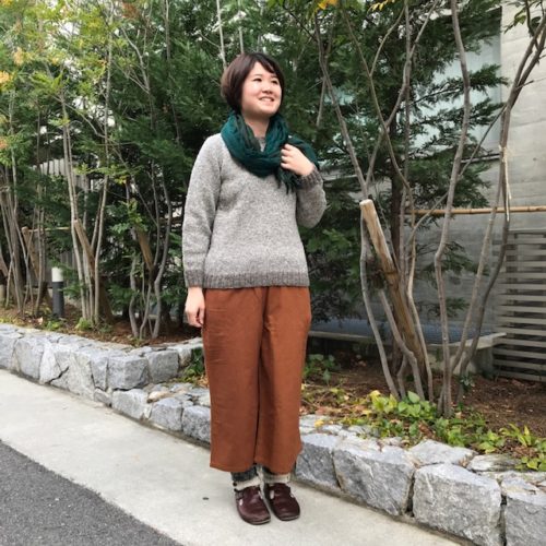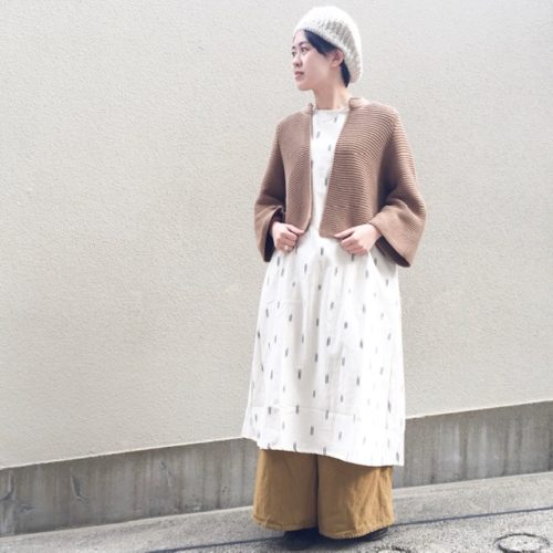 冬はニットの羽織を合わせて温かく。