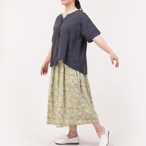 胸下に入ったギャザーがポイントの一枚。