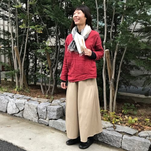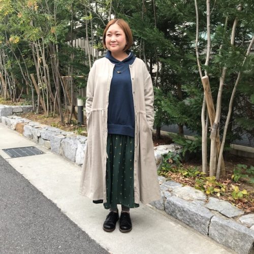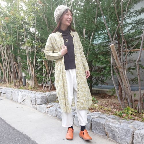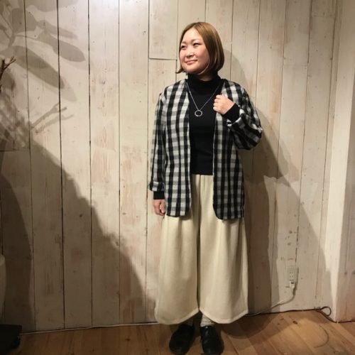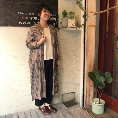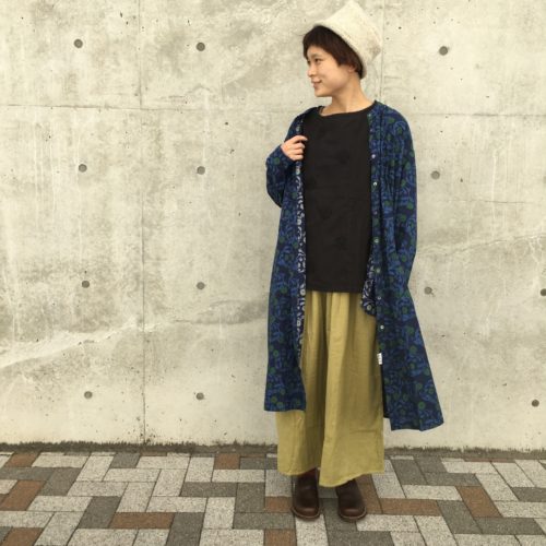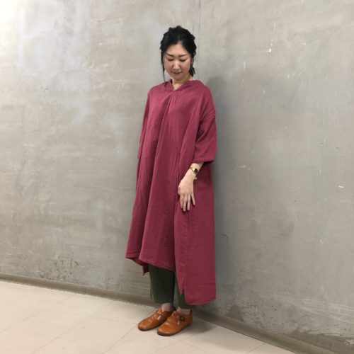 丈を長めに作ったので、これ一枚でさらりと着こなせるアイテムです。
