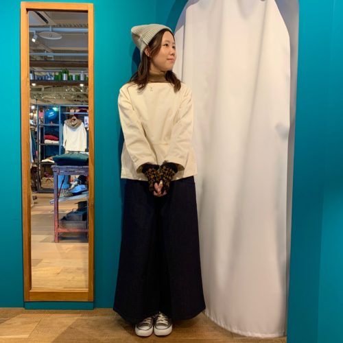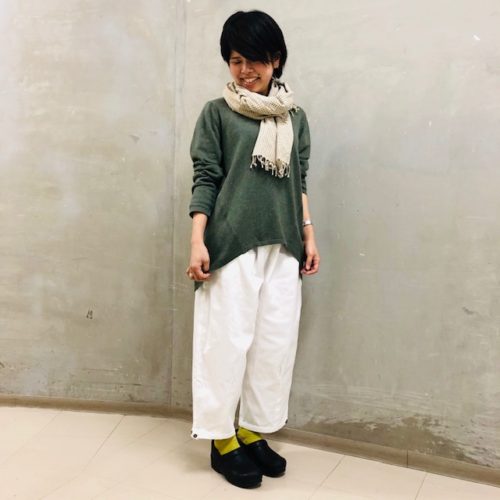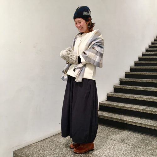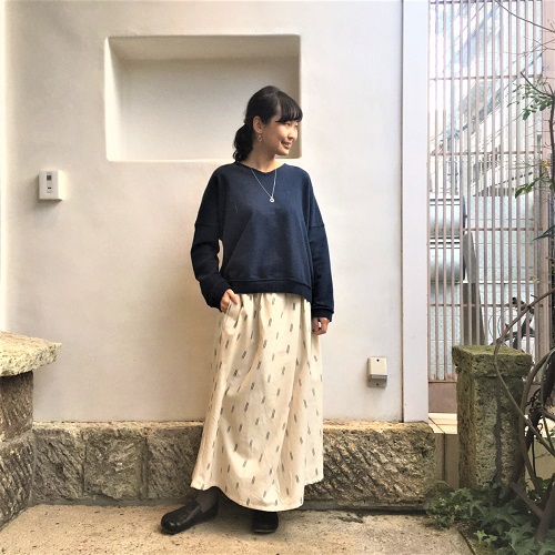 スカートと相性抜群のシサムのトレーナー。