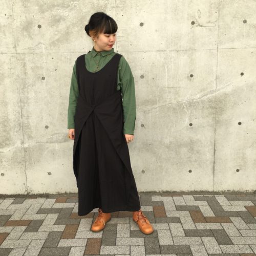 ワンピースを羽織にすることでさらに縦ラインを強調。
