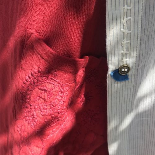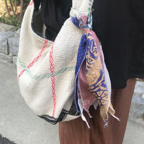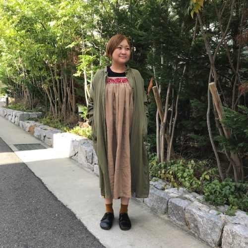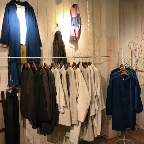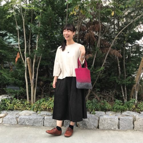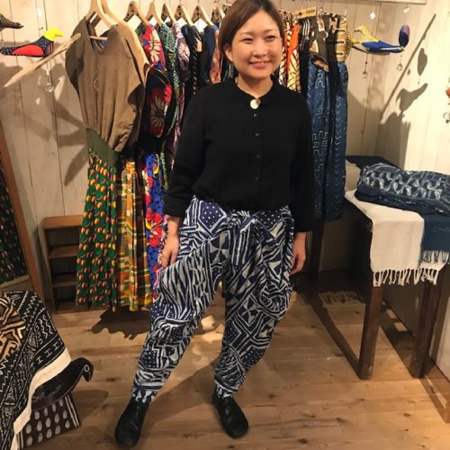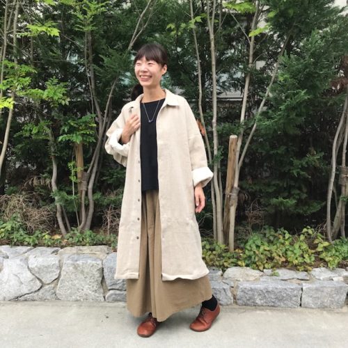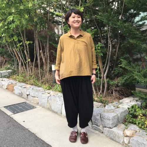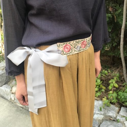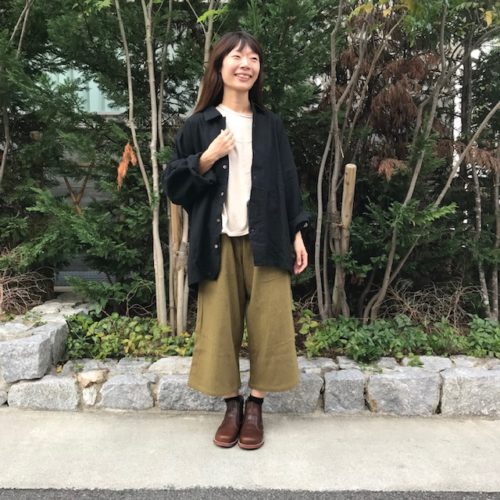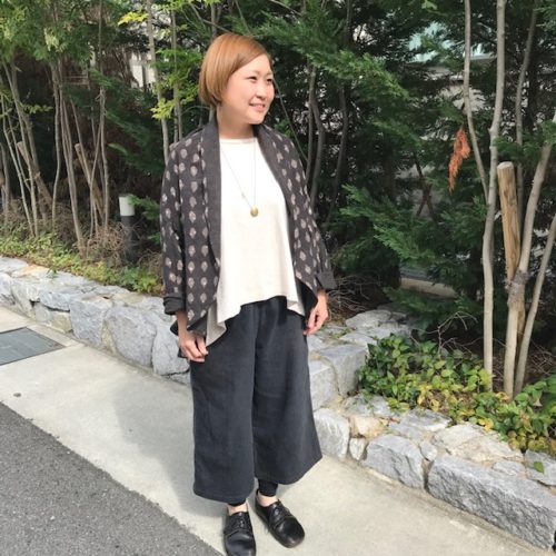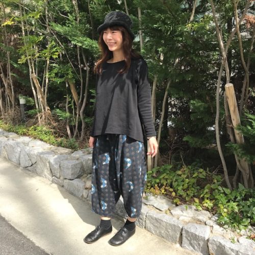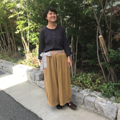 こちらは苦楽園で洋裁やリメイク、刺繍のワークショップなどの活動をされている内納洋裁店さんとコラボされた新作パンツ。