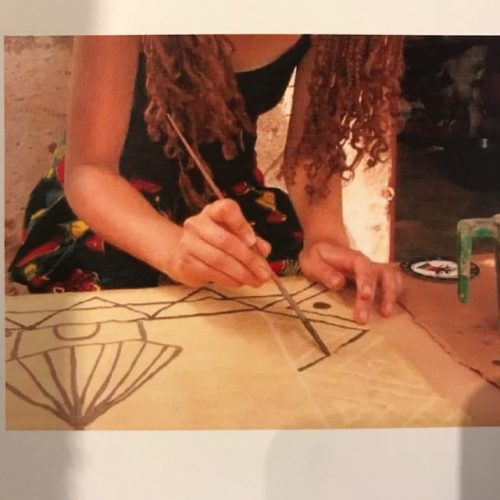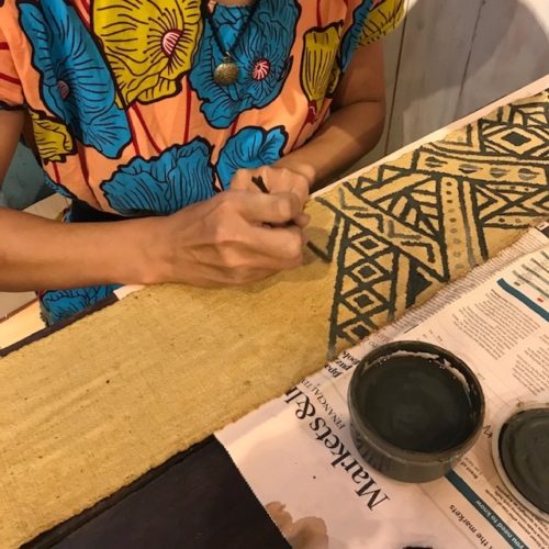 「ダブプリント」と呼ばれる、泥を使ったインド更紗の防染技法をメインに用い、