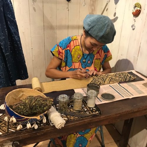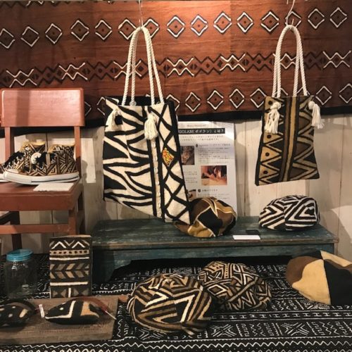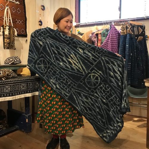 インディゴ(青)とカーシス(ブラウン)の染料を基調にしたオリジナルの布地を作られています。