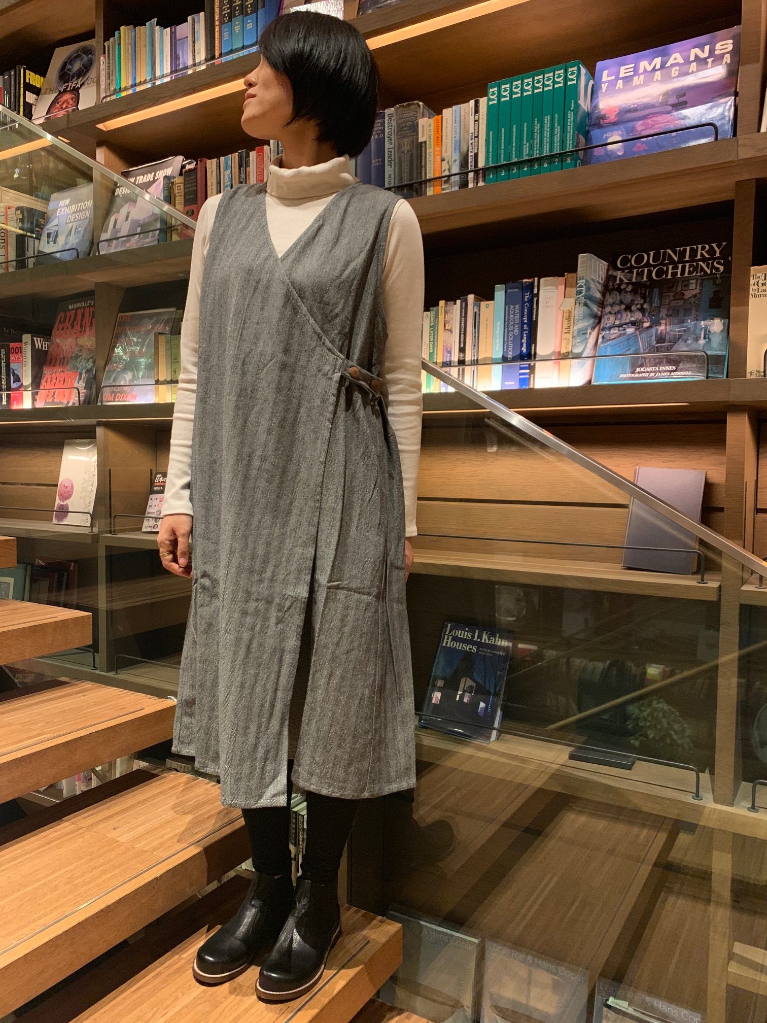 ワンピースとしても、ジレとして活躍するノースリーブワンピースも初登場です。