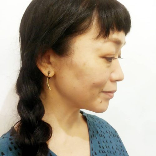京都在住の元橋みぎわさんによる陶器・金彩ブローチ。