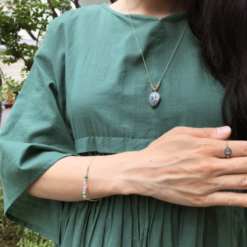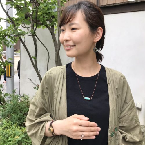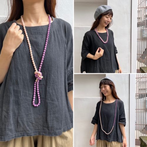 たっぷりの長さがあるネックレスなので、二重にしたり、結んでつけてもかわいいです。