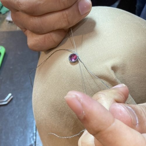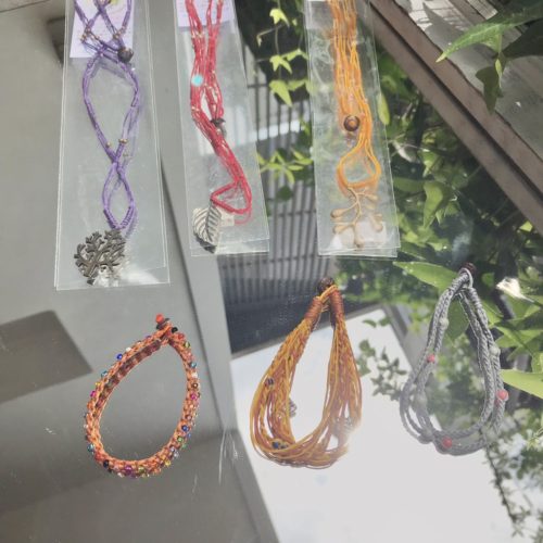 IKTT(クメール伝統織物研究所)の絹糸を使用し、サンタピアップが制作協力したアクセサリーは、一つ一つに作り手の温もりや想いが込められています。