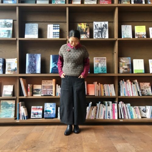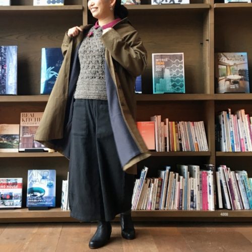胸元でもさりげなく真鍮のブローチが光ります。