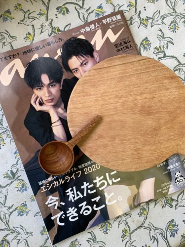 という特集号で、anan 4月8日号にシサム工房のneem woodのコーヒーメジャーとラウンドボードが掲載されています。
