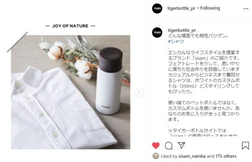 タイガー魔法瓶さんのタイガーボトルサイトの公式アカウントにて、シサム工房をご紹介いただきました