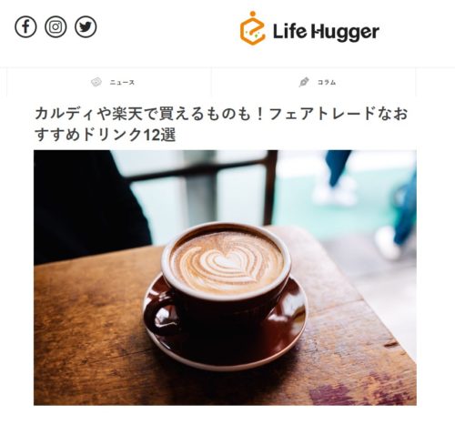 LifeHuggerで、「カルディや楽天で買えるものも!フェアトレードなおすすめドリンク12選」にて
