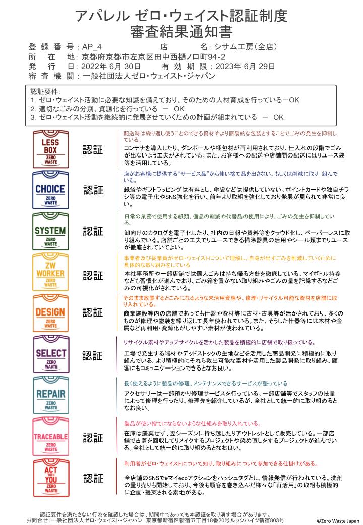 9つある認証カテゴリーの中で、シサム工房全店で2021年2月に取得した4項目に加え、