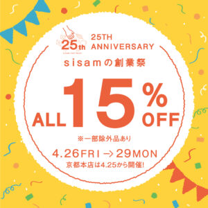 25周年 sisamの創業祭 4/26(金)~4/29(月・祝) 無事終了