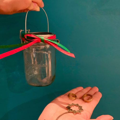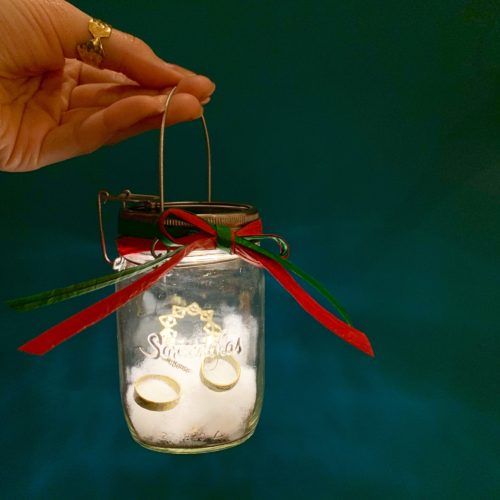 珍しいエコなソーラーランプにアクセを入れてプレゼント。