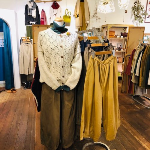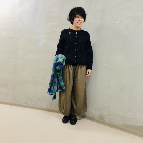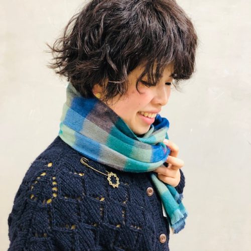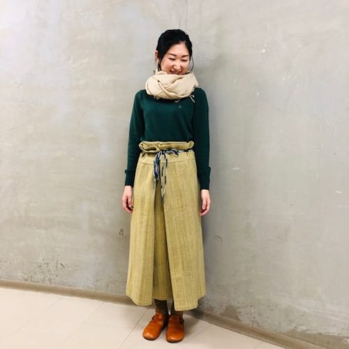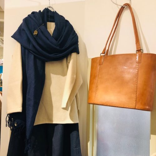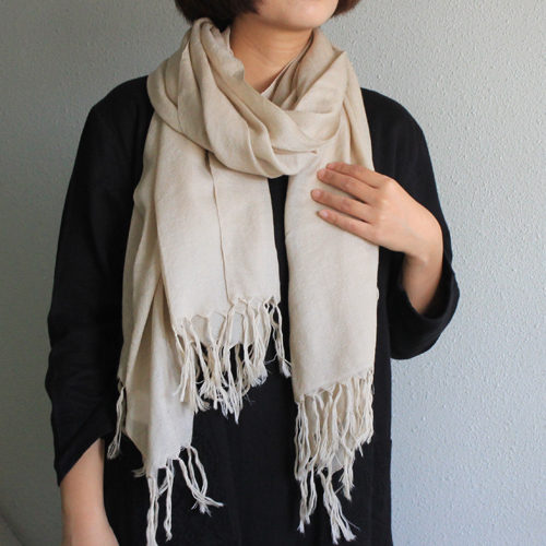 寒くなったら、ウールコットンショールをキュッと巻いて。