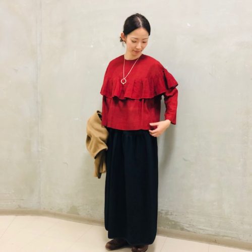 トップス:NIMAI-NITAI シルクコットンフリルTop