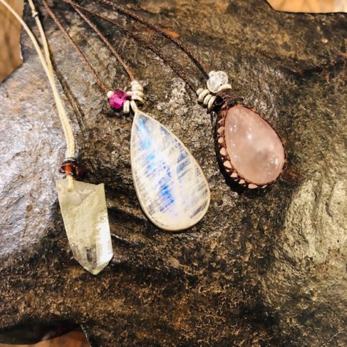 左から水晶、レインボームーンストーン、ローズクォーツ