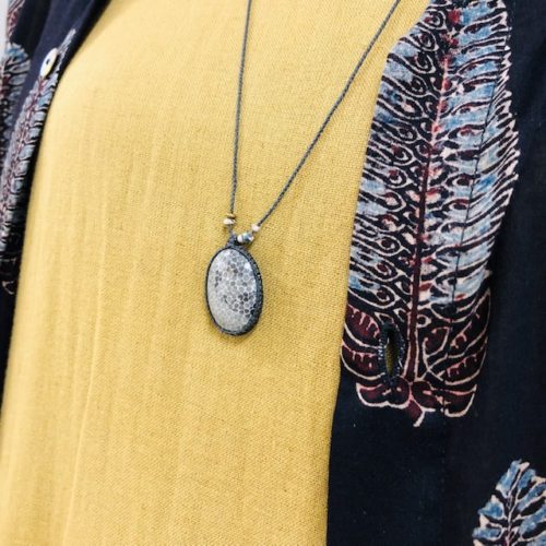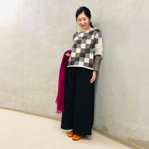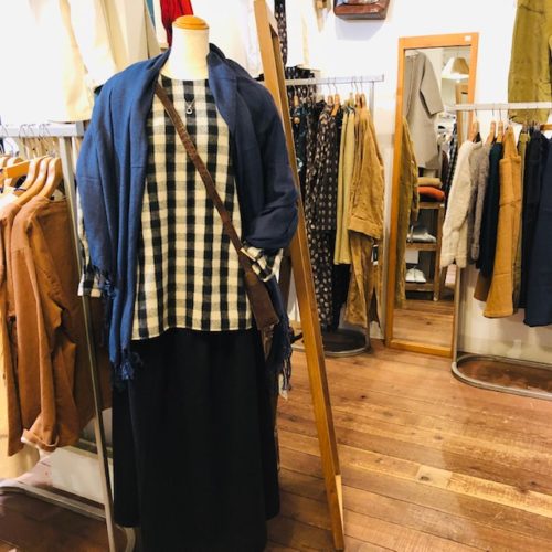 ブロックプリントのロングブラウスは身幅が大きいので、