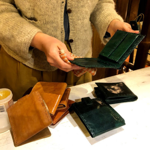 お店に並べる前に、革用クリームで磨きあげていきました!