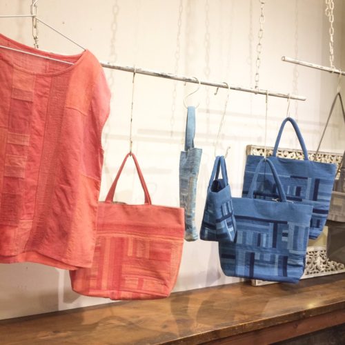 植物の藍や茜、アボカド、カモミールやログウッドから染められています。