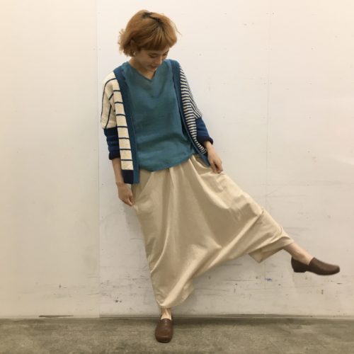 ボリュームのあるボトムスと合わせると良いバランスに仕上がりオススメです。