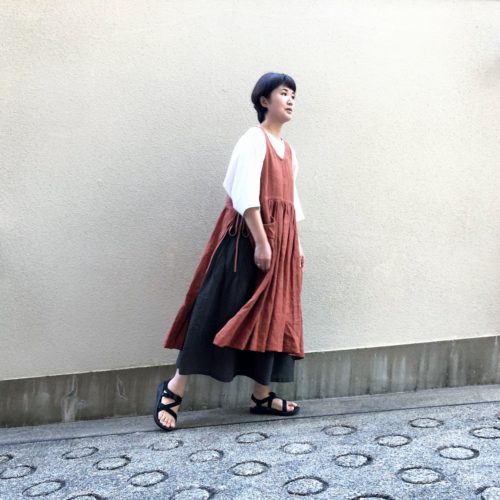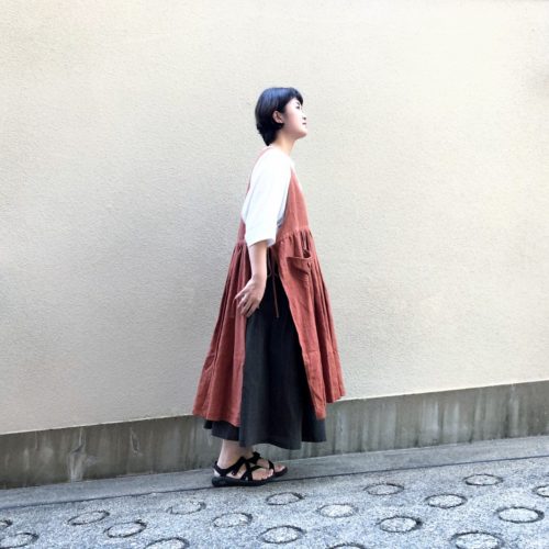 ワンピース: 手葉 3wayエプロンドレス 茜・山桃