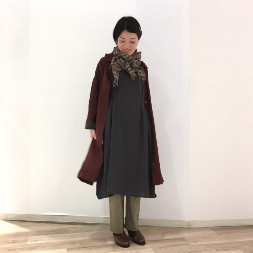 秋口は一枚で、冬は上からコートを重ねて暖かく。