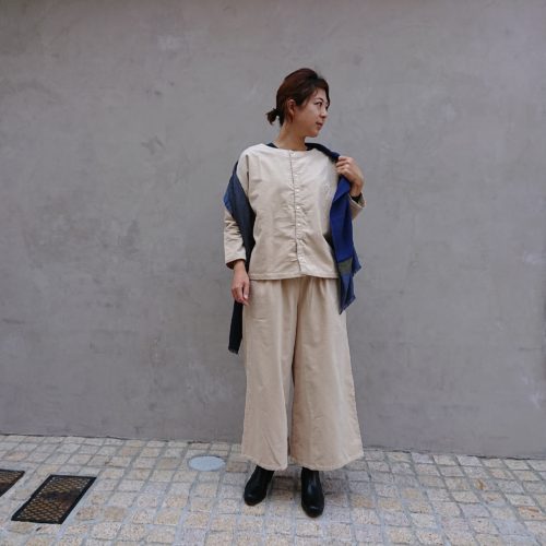 ドロップショルダーなので、かっちりしすぎずに楽に羽織っていただけます。
