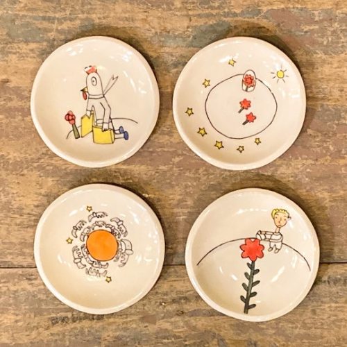 手びねりで作られた器にワタナベさん、イチガさんが描く王子様。