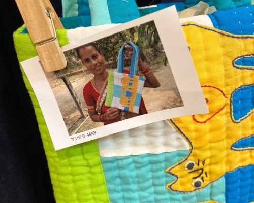 ネパールのキルターたちの個性が際立つキルトバッグ。