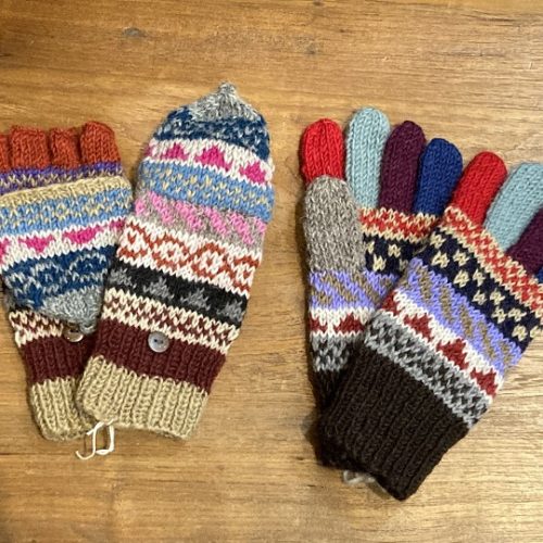 手編みの温もりが感じられる手袋に、心も、指の先も、ほっこりとします。