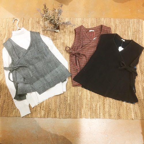袖なしなので着ぶくれなし、前は重なるのでお腹周りも冷え知らず♩