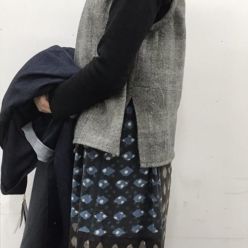ウールベストは中に潜ませやすいサイズ感。