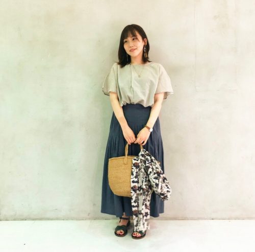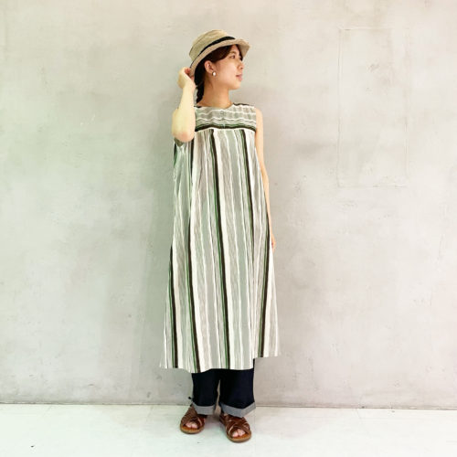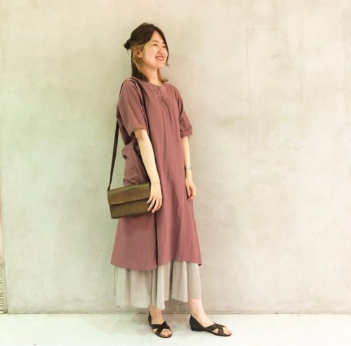 肌離れが良く、一枚で着られるロングワンピースコーデ。
