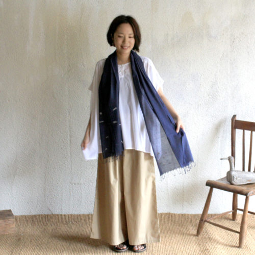 リネン60%とオーガニックコットン40%で織り上げたショールは、